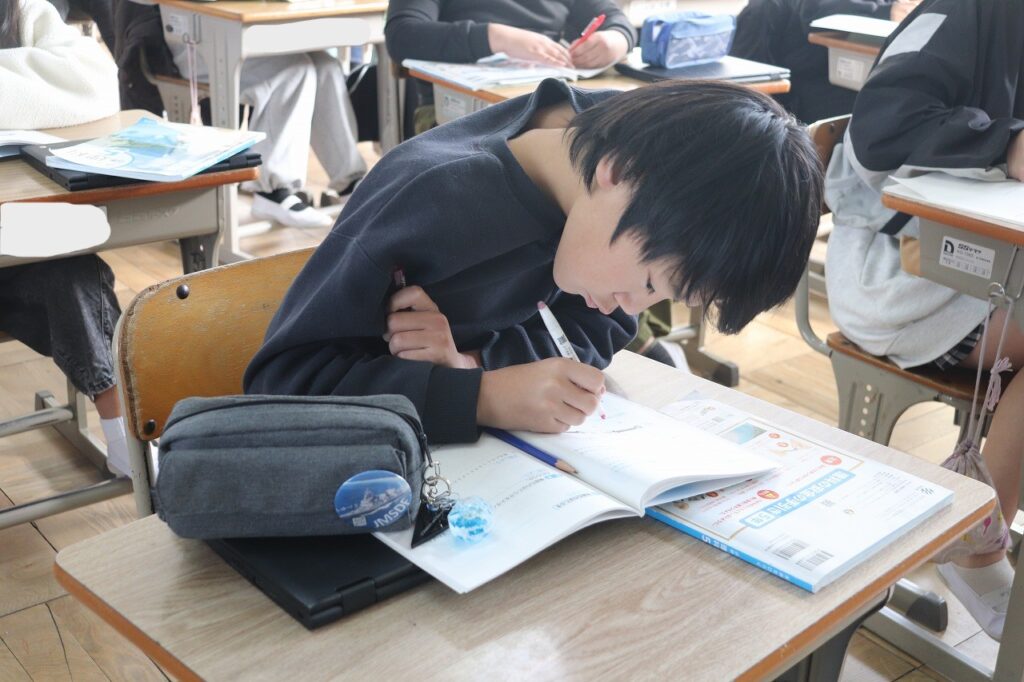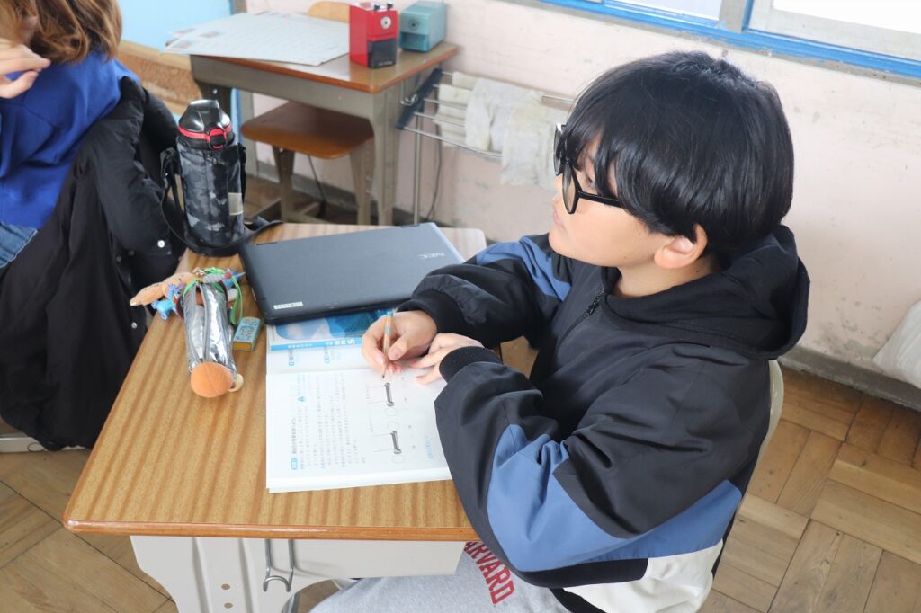 4年生の国語の授業で、「漢字の広場」に取り組んでいました。教科書に掲載されている学校の様子を描いた挿絵を参考に、指定された漢字を使って文を作ることが課題です。生活の中で、漢字を使えるようになることが大切ですね。