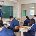 英語をやったり数学の問題を解いたりと、それぞれ別々のことをしているようです。 教室にいるのは保健体育のN先生...