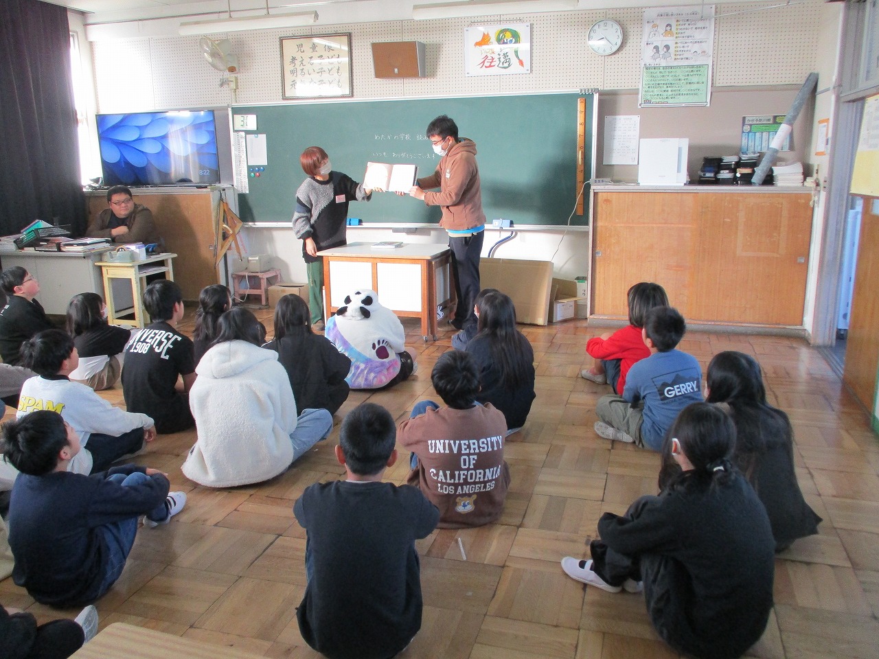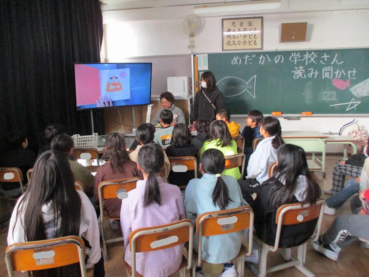 今日の読書タイムは,めだかの学校さんによる読み聞かせがありました。読み方を工夫されていて,毎回,聞き入ってしまいます。1~5年生は,今日が最後の読み聞かせでした。ありがとうございました。来年度も,楽しみにしています。