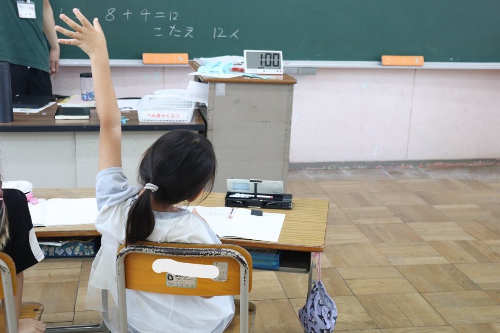2年生の算数の学習でテープ図をつかって「たし算とひき算」の計算をしていました。テープ図をもとに計算問題に取り組んでいました。