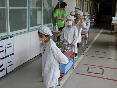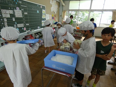 今日の午前中は、プールに入りました。戻ってきたら、給食です。ちょっと疲れはありますが、みんなで準備をしています。