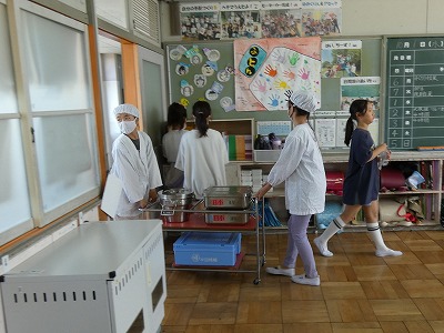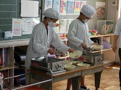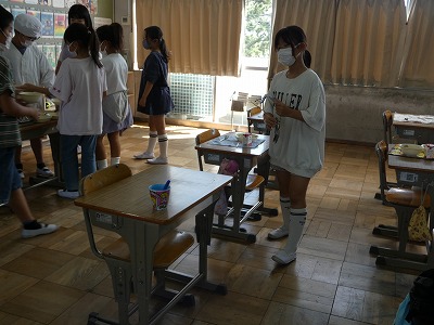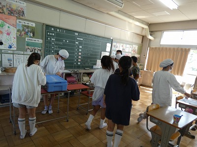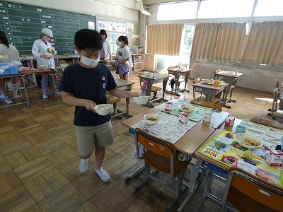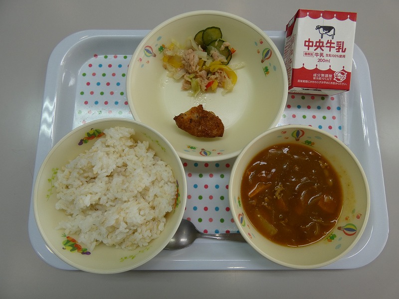 <献立> ロウカット玄米ごはん、牛乳、カレーライス、鶏肉の香味焼き、マリネサラダ