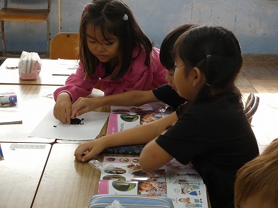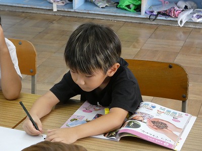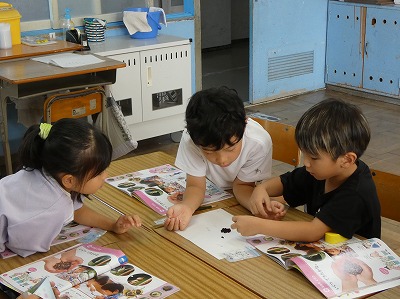 生活科の授業で、一人一人が育てていたアサガオの種を集めました。みんなで協力して、数を数えています。「二、四、六、・・・」算数で学習したことを活用しています。また、この種は、新しく1年生になる子どもたちへのプレゼントになります。「一人、何個あげられるかなあ・・・」楽しそうに考えていました。