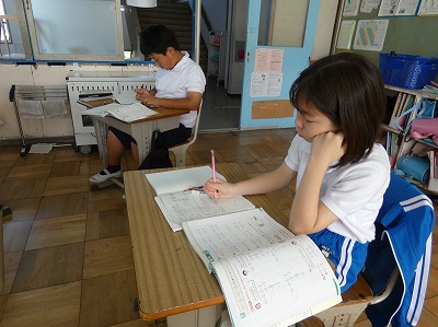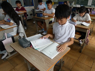 5年生の算数の授業で、分数のたし算やひき算についての学習を進めています。今日は、帯分数のたし算とひき算について学びました。仮分数にすると、今まで学習してきたことが使えますね。
