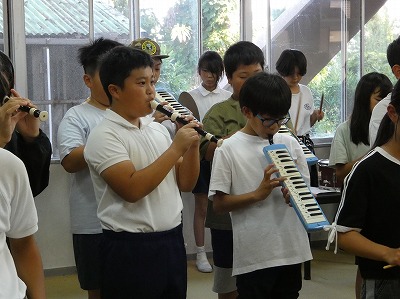 今日の授業後は、鼓笛の練習日です。今日は、なかよしルームにみんなが集まり、一緒に演奏をしました。島民体育祭まで、あと少し。素敵な演奏になるようがんばっています。