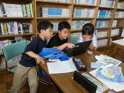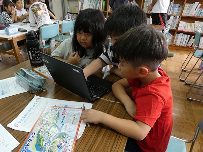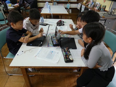 10月31日に、1・2年生が校外学習に出かけます。その校外学習に向けて、自分たちの目標や実際に見学したい所を考えました。2年生がリードしながら、グループごとに相談しています。
