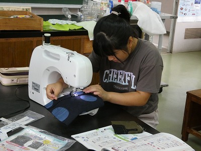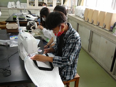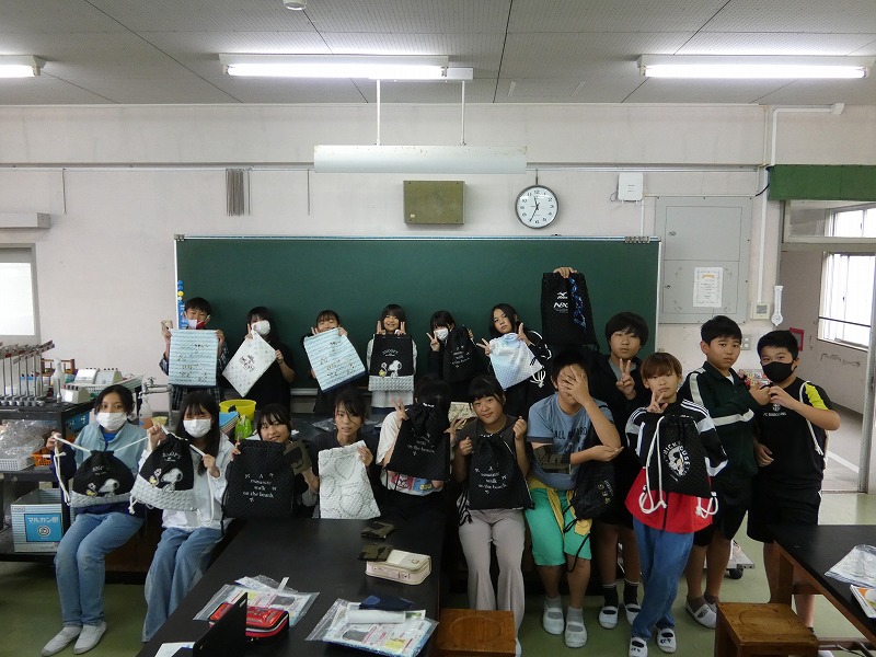 6年生の家庭科の授業で、ミシンを使ってナップザックやトートバッグの製作を続けてきました。今日が最終回で、作品ができあがりました。普段の生活の中で、ぜひ使ってくださいね。