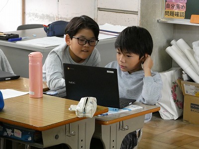 5年生の国語の授業で、「よりよい学校生活のために」という学習があります。そこで、給食の残滓に着目し、フードロスを減らすことを意識した5年生が、全校に広げるための活動を考えています。朝会での発表、絵本づくりなど、グループごとに工夫して取り組んでいます。自分たちで考えて、いろいろなことに挑戦しようとしています。
