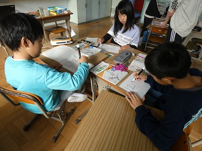 3年生の算数の授業で、「1けたをかけるかけ算の筆算」の単元の学習が始まっています。今日は、数え棒を使って「12×4」の計算の仕方を考えました。「10×4」と「2×4」に分けて考えることで、筆算の計算の仕方につながっていきますね。