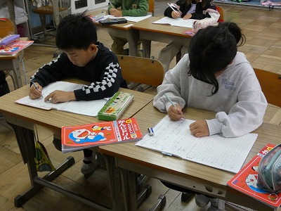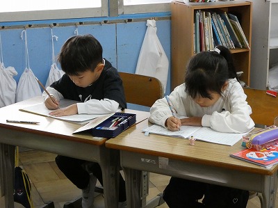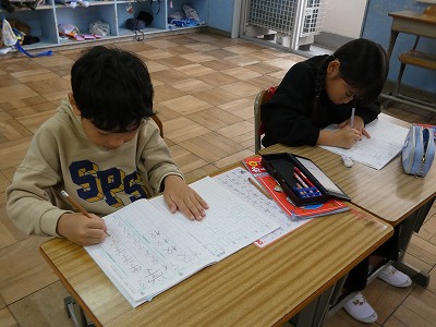 1年生は、毎日少しずつ漢字の学習を進めています。今日は、漢字ノートを使って練習していました。使える漢字が増えてきました。