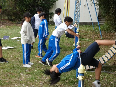 5年生の体育の授業で、鉄棒運動に取り組んでいます。4年生までに挑戦した技も含めて、それぞれのペースで練習していました。見本となる動画を見て、ポイントとなる動きを確認しながら挑戦しています。