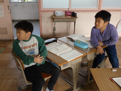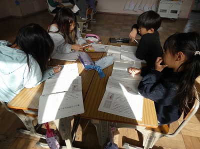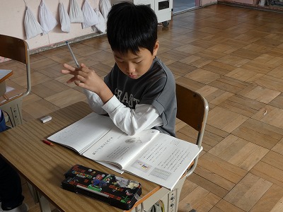 2年生の国語の授業で、「紙コップ花火の作り方」という説明文の学習が進んでいます。今日は、段落のまとまりについて考えました。必要に応じて、黒板に書かれている考え方を確認したり、近くの仲間と相談したりしながら進めています。