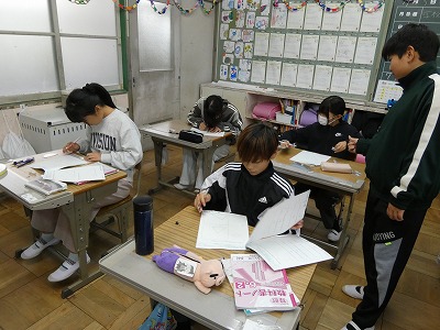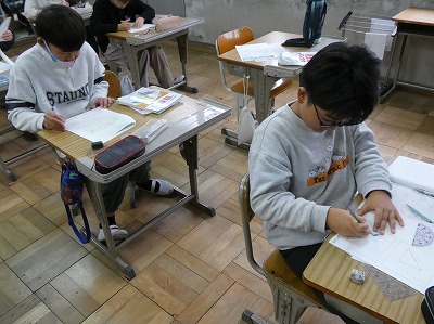6年生の算数では、「図形の拡大と縮小」の学習が進んでいます。今日は、プリントを使って練習問題に取り組んでいました。この単元の学習は、中学校での「相似」の学習につながります。しっかりと身に付けておきましょうね。