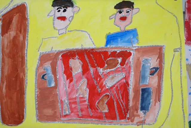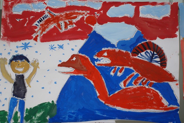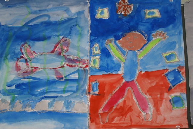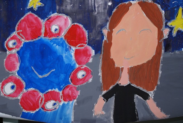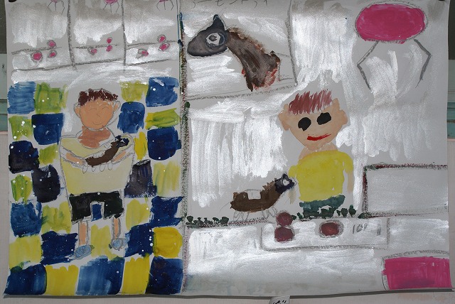 11/20(木)4年生図工作品 読書感想画「いかだネコG氏12のぼうけん」