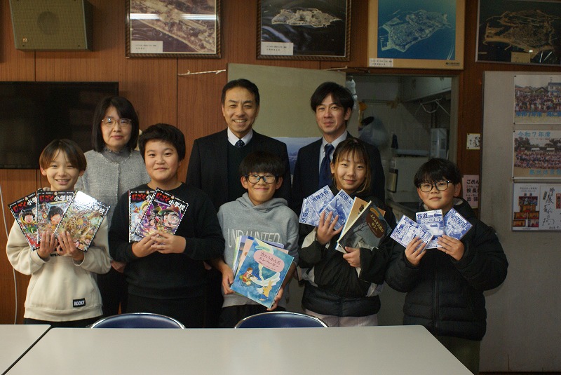 今年度も創価学会の皆様から、たくさんの児童図書を寄贈していただきました。児童会役員の子どもたちが全校児童を代表して、図書を受け取りました。大変ありがとうございました。