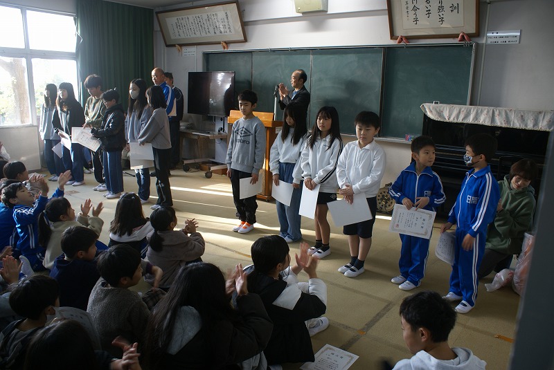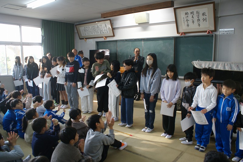 読み書きテスト・計算テストの満点賞の表彰をしました。皆さん、おめでとうございます。また、満点ではなかったけれど、合格した子、一生懸命努力した子など、多くの頑張りが見られたテストになりました。