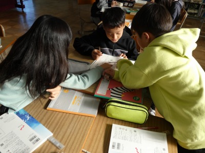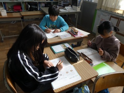 3年生の教室をのぞくと、国語の授業で同音異義語について学習していました。文にひらがなで書かれている部分について、意味を考えて漢字に直しています。漢字は、日常でも使えるようになることが大切ですね。