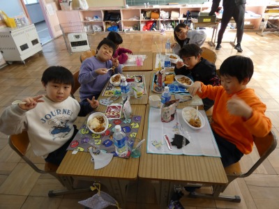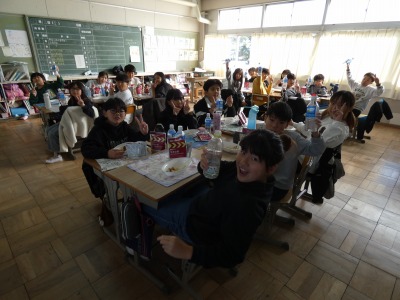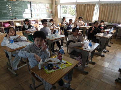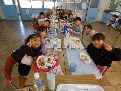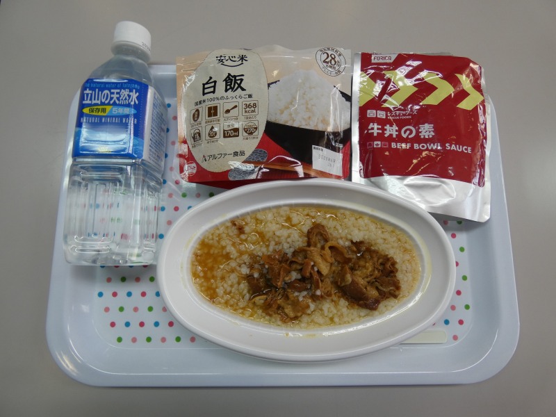 今日は、フェリーが欠航となったため、給食は非常食対応となりました。メニューは牛丼です。こんなときこそ、日頃の感謝の気持ちが大切ですね。