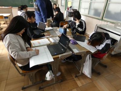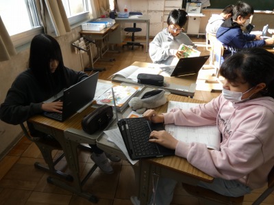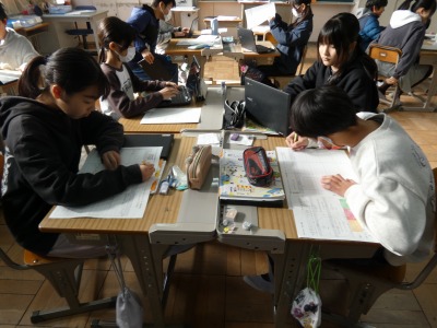 6年生の家庭科で、栄養のバランスを考慮して、1食分の献立を考える学習を行っています。タブレットを使って、調理の仕方や手順を調べています。