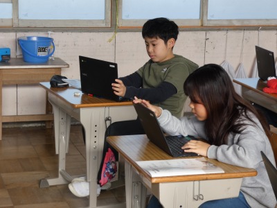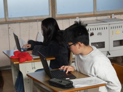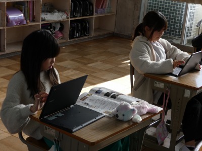 4年生は、明日、福祉実践教室で、点字・ガイドヘルプに関する体験学習を行います。今日は、その事前学習として、ハンドブックやタブレットを使って、視覚障害の種類について知ったり、どんな支援があるとよいかを考えたりしました。