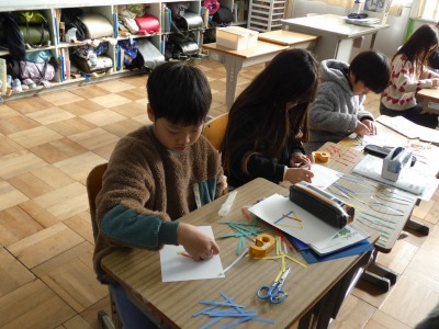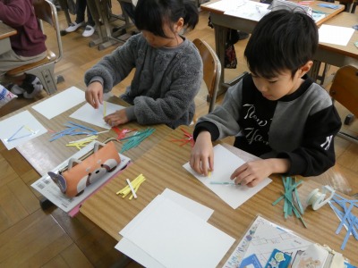 3年生の算数で、「三角形」の単元の学習が始まりました。いろいろな長さの辺を組み合わせて、三角形をつくり、辺の長さの特徴を基に仲間分けをしました。体験的に、正三角形や二等辺三角形について学習しています。