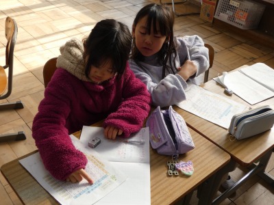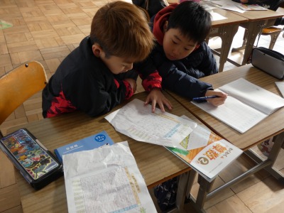 2年生の算数で、「かけ算のきまり」の単元の学習が進んでいます。教室をのぞくと、九九表を使って、答えが同じになるかけ算を見つけていました。「かけ算は、かける数とかけられる数を入れ替えても答えが同じになる」というきまりの学びにつながる活動です。このような活動を通して、自分たちでかけ算のきまりに気づいていくことは大切ですね。