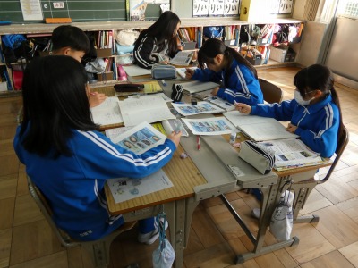 6年生の社会では、「新しい日本へのあゆみ」という現代の歴史の学習が進んでいます。今日は、「日本と国際社会を取りまく問題」をテーマに調べ学習を行いました。これからの社会を担う一員として、現代の問題を自分事として考えていきたいですね。