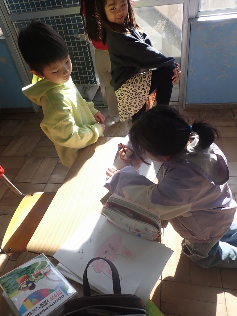 国語の学習を生かして、おみせやさんごっこをやるための商品をつくっていました。いろいろなアイディアをお互いにみせあって、想像力がふくらんでいきます。