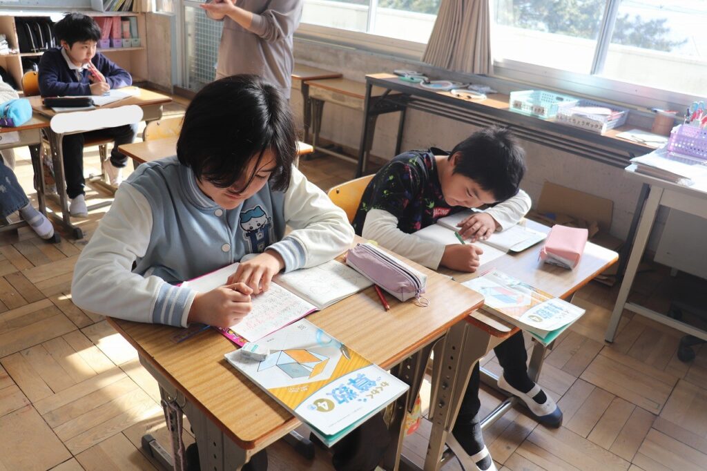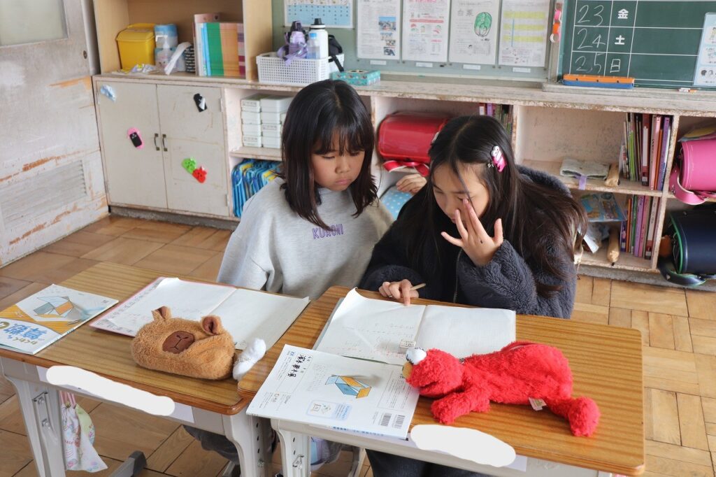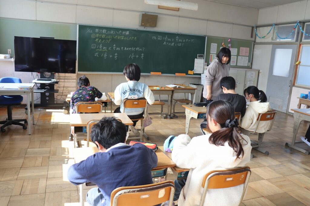 4年生の算数で、帯分数の学習をしました。一人で考えたり、ペアで考えたりして帯分数の問題に取り組んでいました。