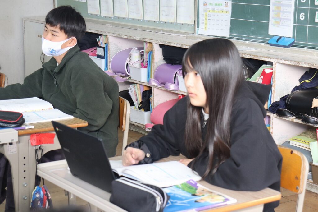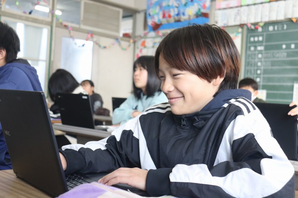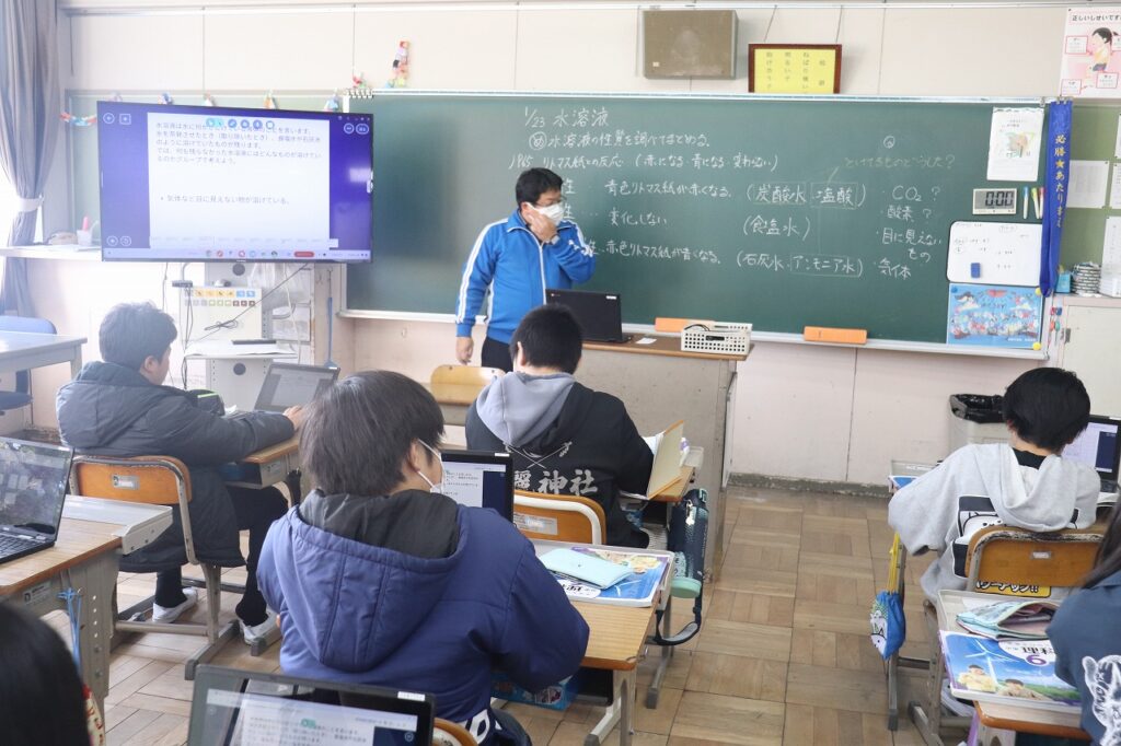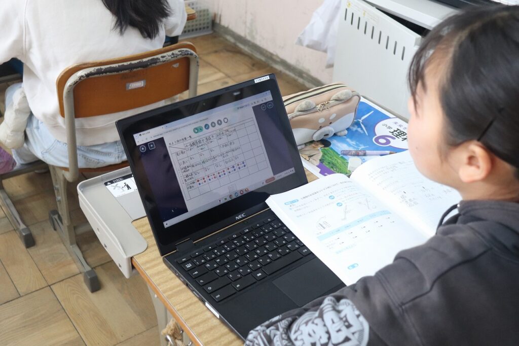 6年生の理科で水溶液の性質について学習していました。タブレットを上手に使ってまとめていました。