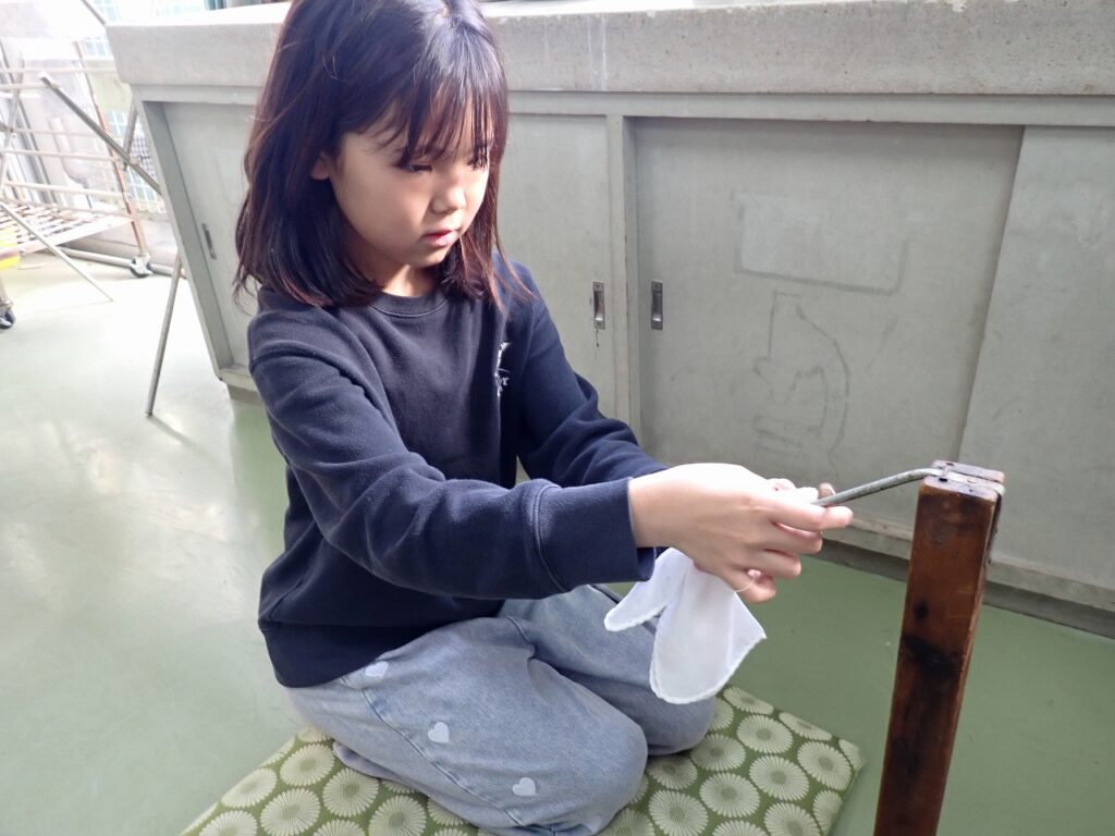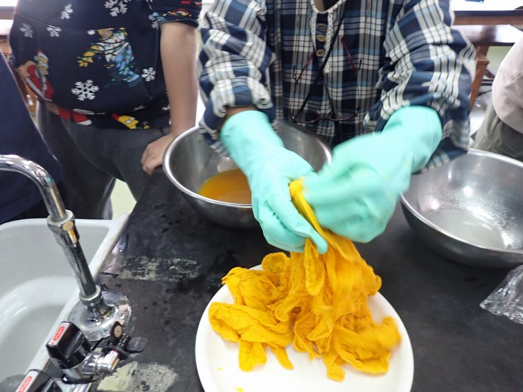 ハンカチは乾いてから糸を外したら完成です。どんな模様ができているかな。楽しみですね。