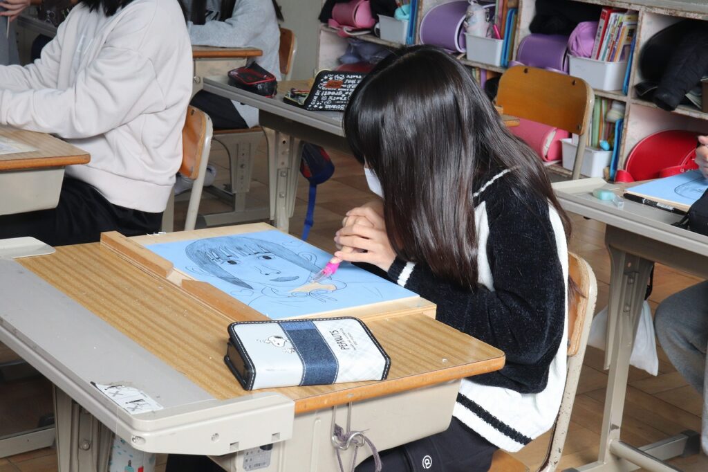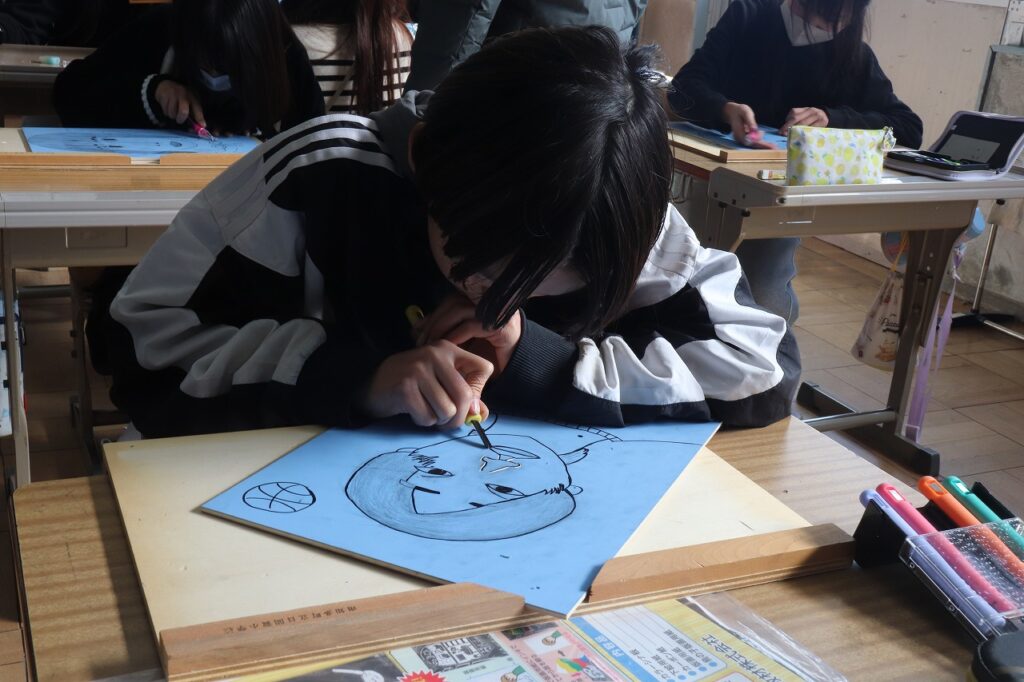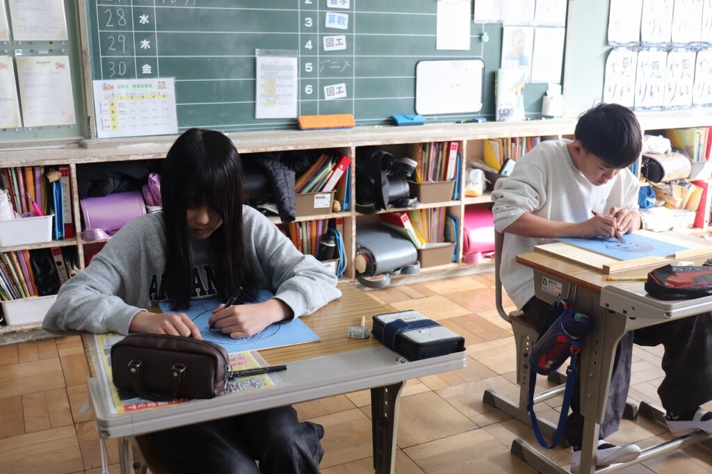 6年生の図画工作科で版画の制作をしていました。