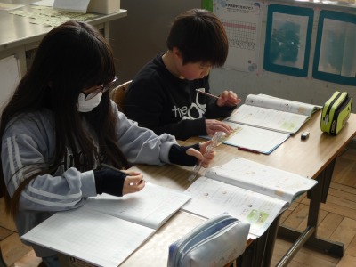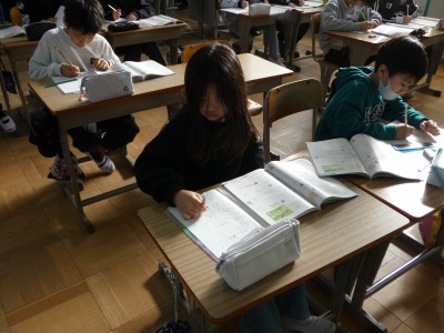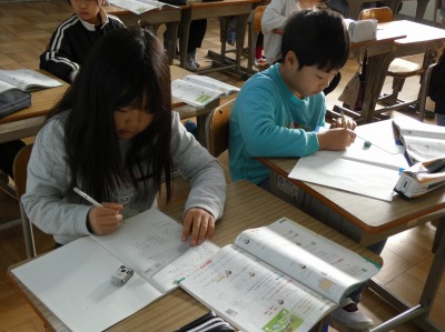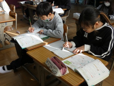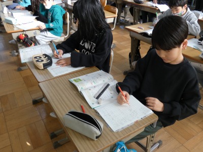 3年生の算数で、小数の学習が進んでいます。今日は、小数のたし算・ひき算の筆算の問題に取り組みました。これから先、必要なときに使えるように、しっかりと練習しています。