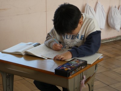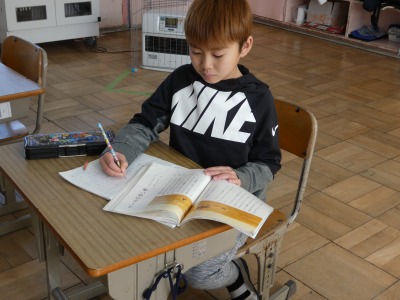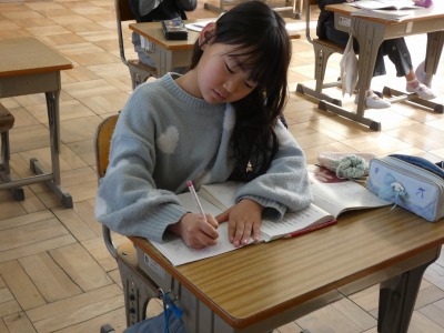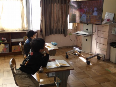 2年生の国語で、「スーホの白い馬」という物語の学習を進めています。教室をのぞくと、物語を読んで、心に残ったことを理由とともにノートにまとめていました。物語に出てくる「馬頭琴」の演奏映像も見て、イメージを膨らませています。