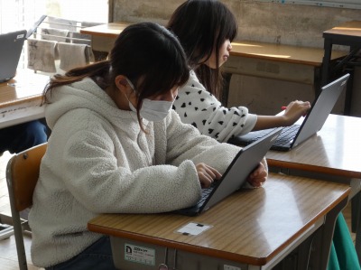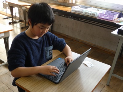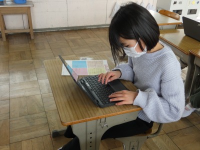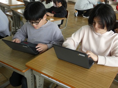 4年生の教室をのぞくと、先日体験した絞り染めについて、タブレットを使ってまとめていました。実際に体験を通して学んだことや感じたことを整理しています。体験を通して、初めて分かることもたくさんありますね。