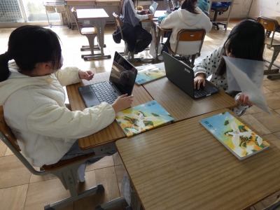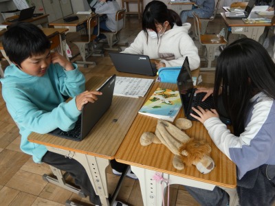 4年生の国語で、「調べて話そう、生活調査隊」の単元の学習が進んでいます。この単元では、日常生活に関わる疑問を基に、アンケートを行い、その結果をまとめて発表します。同じテーマの仲間がいる場合は協力してアンケート結果をまとめ、発表の準備をしています。