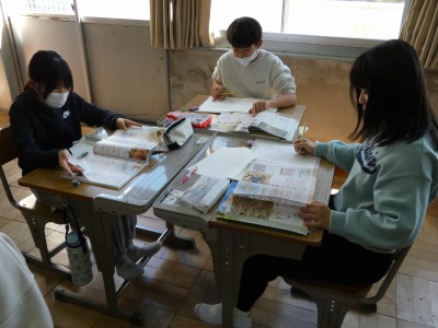 6年生の教室をのぞくと、社会の授業で復習に取り組んでいました。小学校で新しく学習することは終わりが近づいています。しっかりと復習して、中学校生活のよいスタートを切りたいですね。