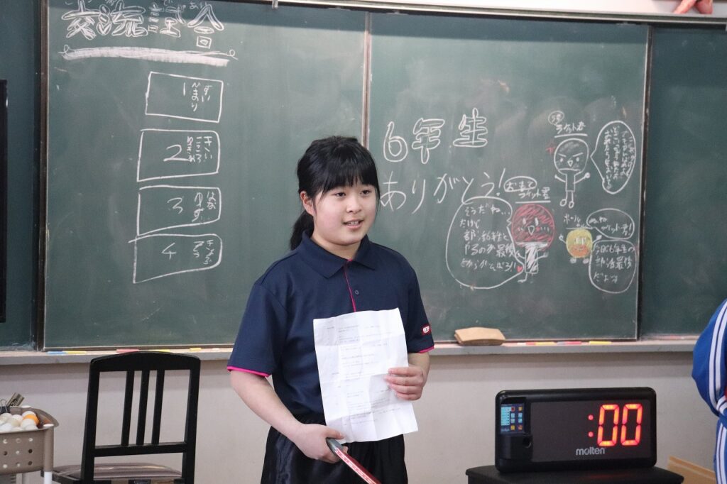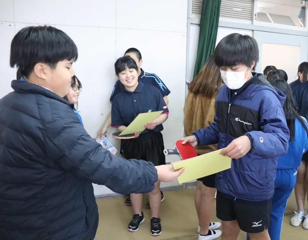 6年生にとって、3年間の練習の成果を発揮するとともに、部活動の後輩や先生方、そして応援してくださる保護者の皆様へ感謝の気持ちを伝える機会として、卓球部が「交流試合」を行いました。後輩や先生方との対戦もあり、会場は大いに盛り上がりました。6年生はこれまでの練習の成果を発揮しながら、一球一球に思いを込めてプレーしていました。応援に来てくださった保護者の皆様、温かいご声援をありがとうございました。