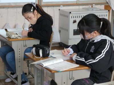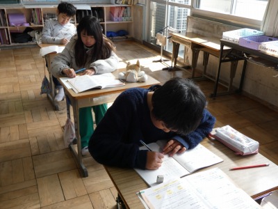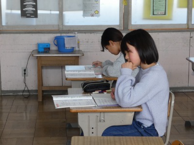 4年生の算数で、1年間の復習が始まっています。教室をのぞくと、概数の計算の復習をしていました。およその数の計算です。桁数を間違えないように、丁寧に計算しています。