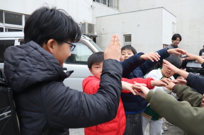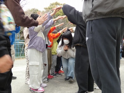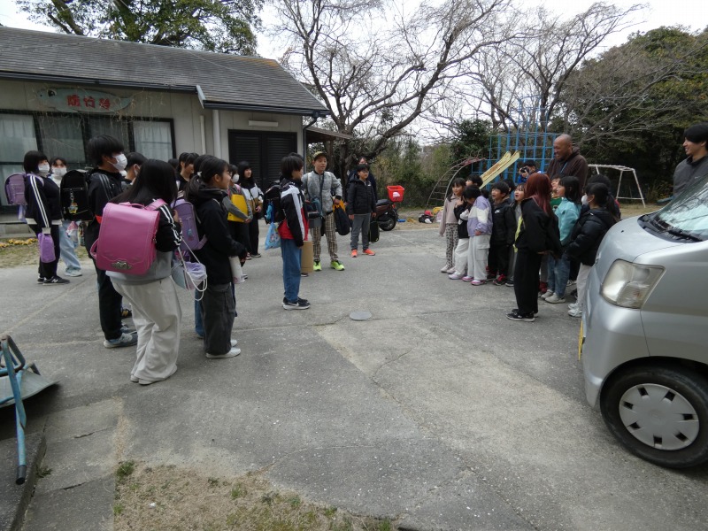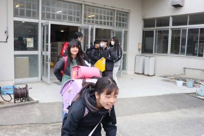 明日は、卒業式です。卒業式に参加しない1、2年生にとっては、今日が日間賀小学校での6年生とのお別れの日です。1、2年生がアーチをつくり、6年生の見送りをしました。笑顔いっぱいのなかにも、名残惜しそうにしている姿。お互いの温かい心が伝わり合う、素敵な見送り式でした。