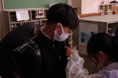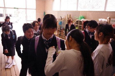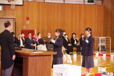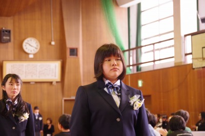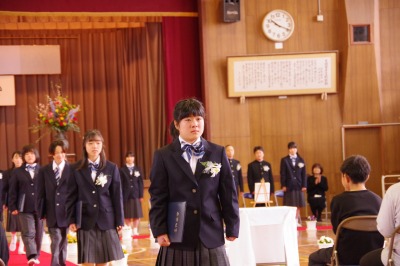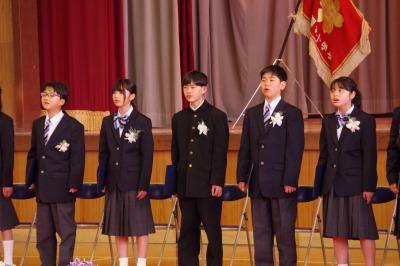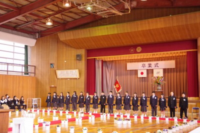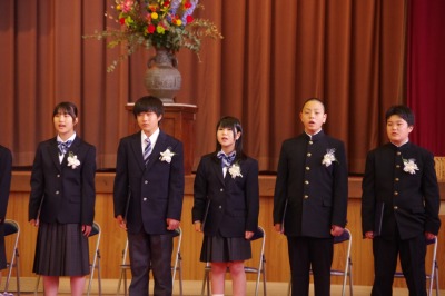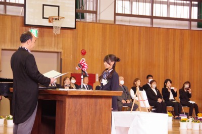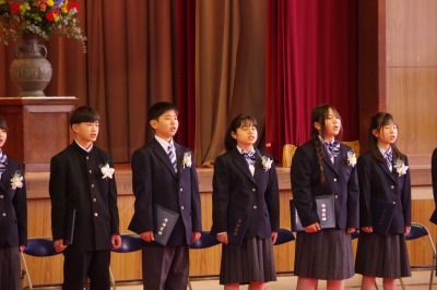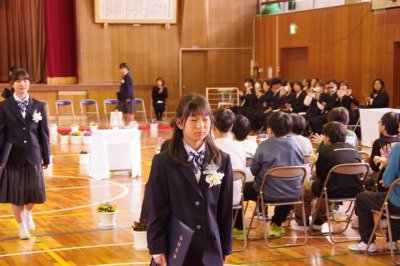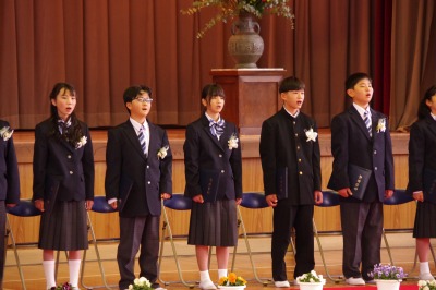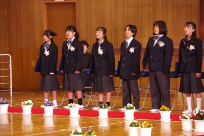 明け方まで残った雨も上がり、春へとさらに一歩近づいた3月19日、3年生から5年生の子どもたちが在校生の代表として参加し、日間賀小学校の卒業式が行われました。呼びかけの場面では、卒業生、在校生ともに感謝の言葉があふれ、感動いっぱいの式になりました。卒業生の皆さん、4月からも笑顔いっぱいでがんばってくださいね。