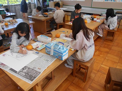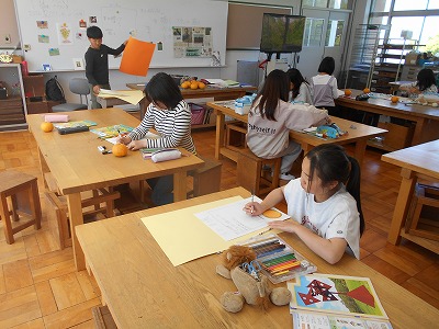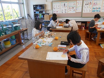 5年生では、図画工作の授業が始まりました。今日は、1年の学習の目標を決めるとともに、旬の「夏みかん」をモチーフに、色鉛筆や絵の具などの画材を工夫して色を塗っていました。絵の具で色を混ぜて配色を工夫したり、消しゴムを使って色をぼかしたりして、思い思いに仕上げていきました。今日立てた目標を胸に、これからすてきな作品をつくってきましょう。