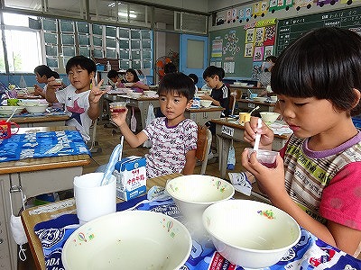 給食には「七夕ゼリー」がつき、児童たちは大喜びでした。