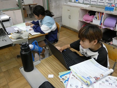 6年生の社会の授業では、江戸時代の学習が終わり、明治時代の学習が始まっています。新しい政府の施策などについて、調べ学習を進めています。