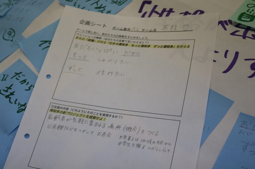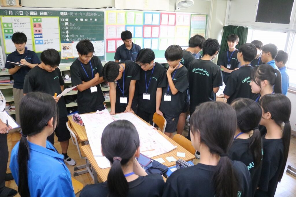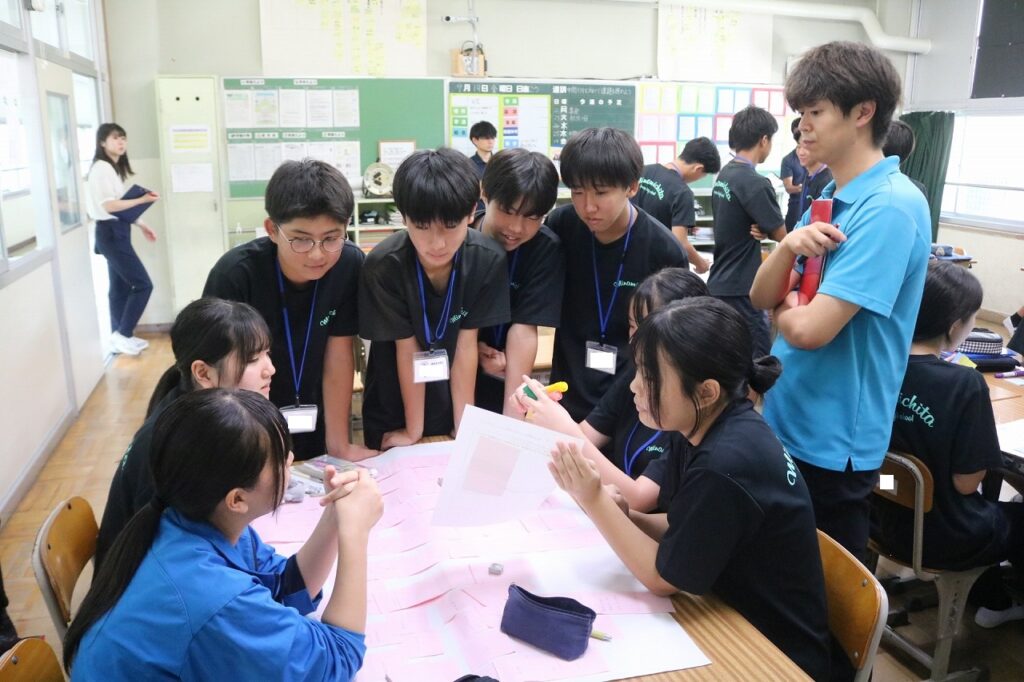 特設の授業は、3年生の総合的な学習の時間で行いました。3年生は、1月のクリエイティブミーティングに向けた企画について熱心に話し合いに取り組み、南知多中が開校当初から取り組んできた探究的な学びの姿を見せてくれました。