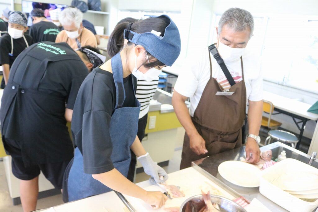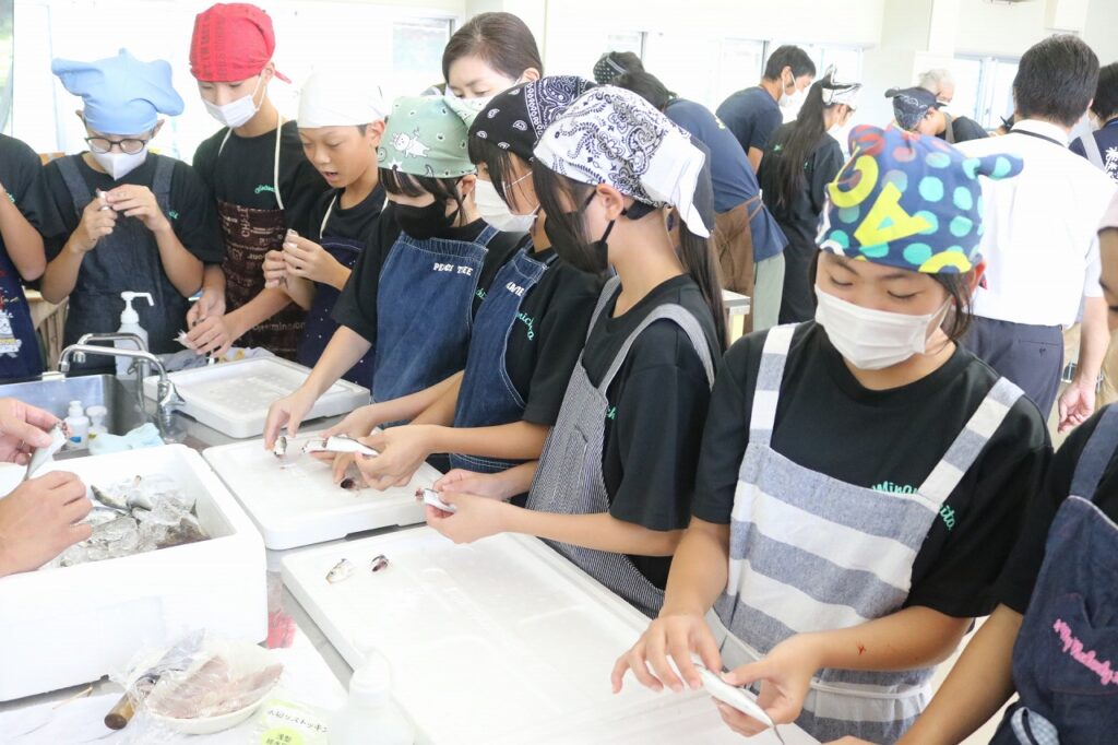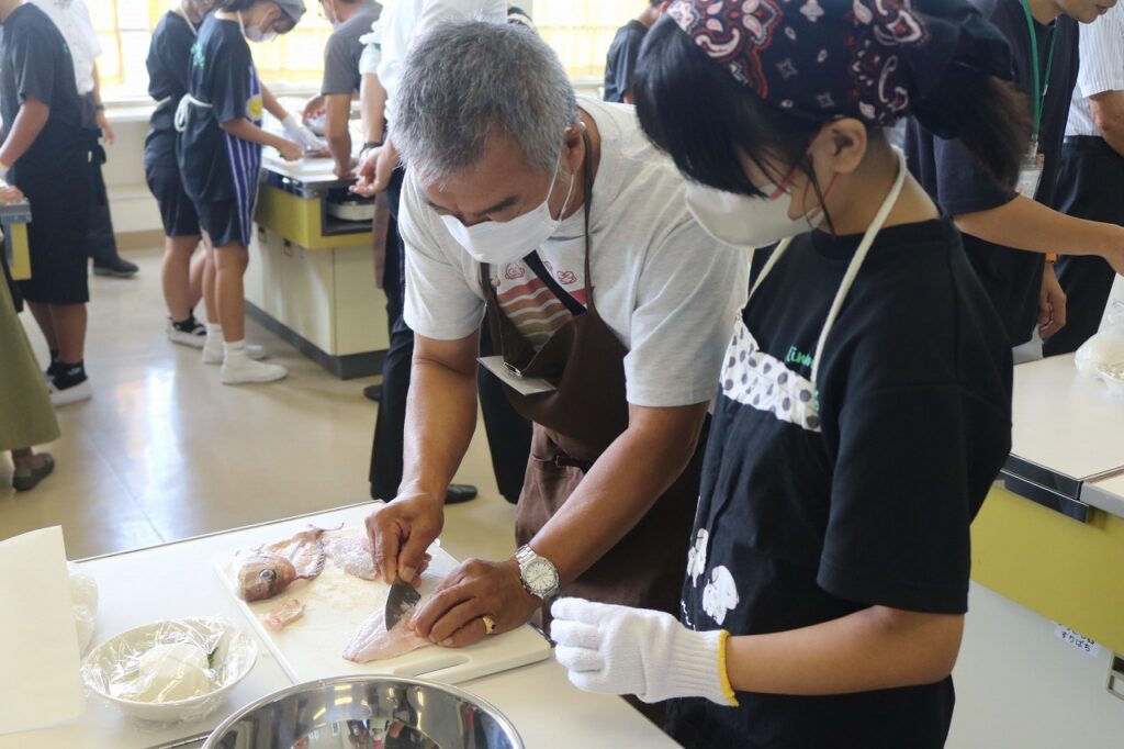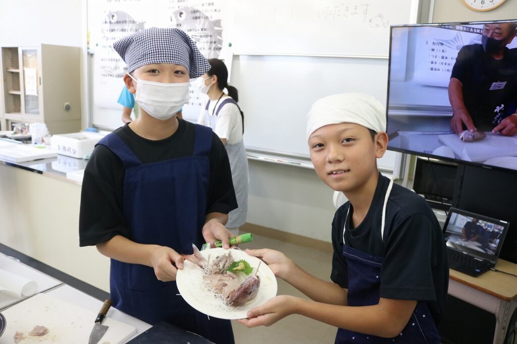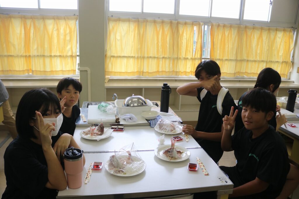 また、漁師の方のご厚意により、とれたての「鰯」をいただき、手開きの経験もすることができました。貴重な経験をさせていただき、ありがとうございました。これから家庭でも、「魚」を使った料理にチャレンジしてほしいと思います。
