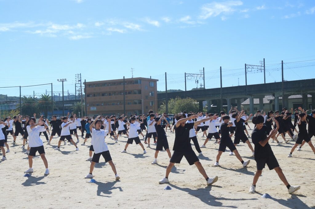 今日の1時間目は2週間後に迫った体育祭の演舞中間発表でした。初めて見る他のクラスの演舞を見て、よい刺激をもらえたのではないでしょうか。ここから本番までどのように仕上げていくのかとても楽しみです。