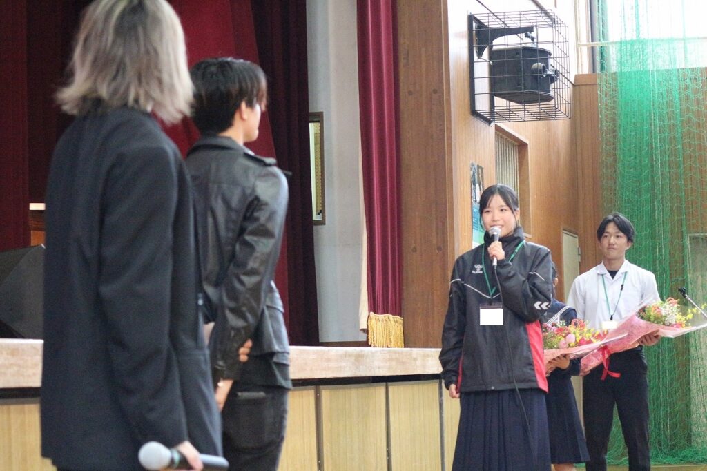 最後に生徒から、お礼の言葉と花束を風音響さんにお渡ししました。