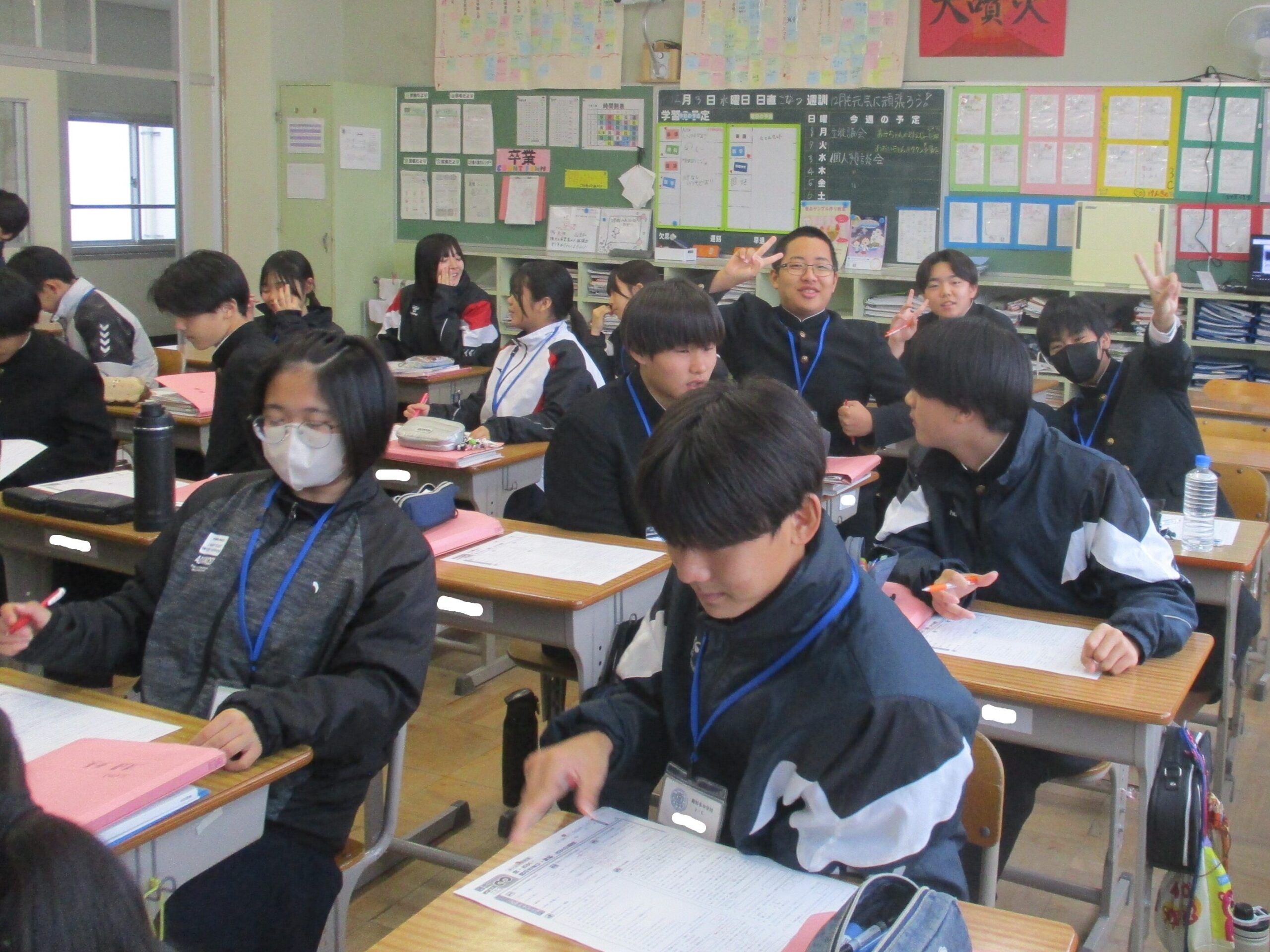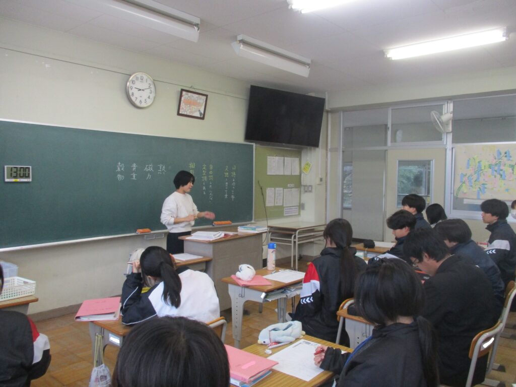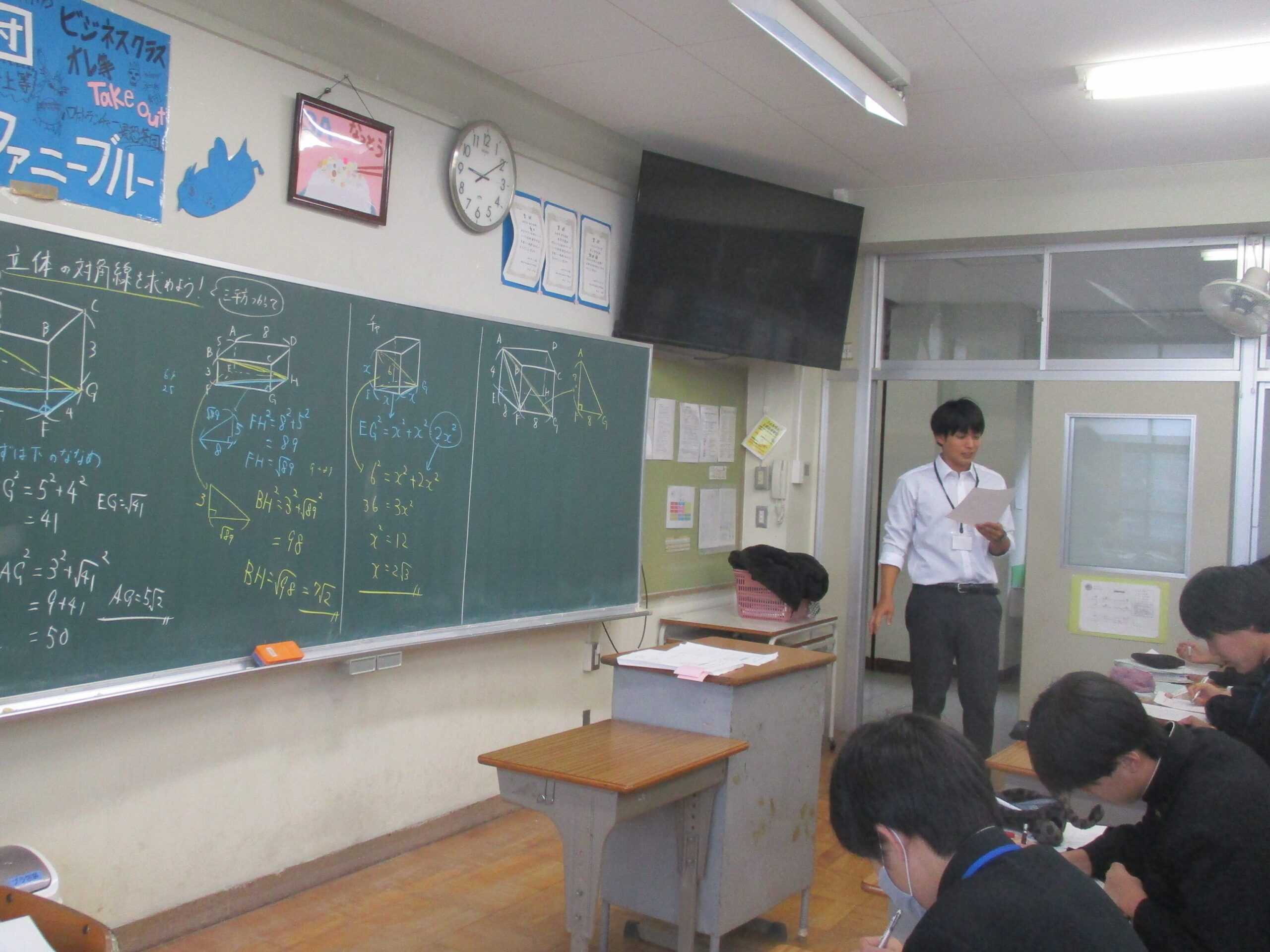 1時間目の様子です。A組は数学で、三平方の定理を使って問題を解いていました。図形をいろいろな角度から見て、一生懸命答えを出そうとしていました。B組は長距離走のトレーニングをしました。指示されたペースに合わせて走ることで、ペース変化に順応できるよう練習しました。C組は国語で、文の種類や擬態語と擬音の違いなどを確認していました。