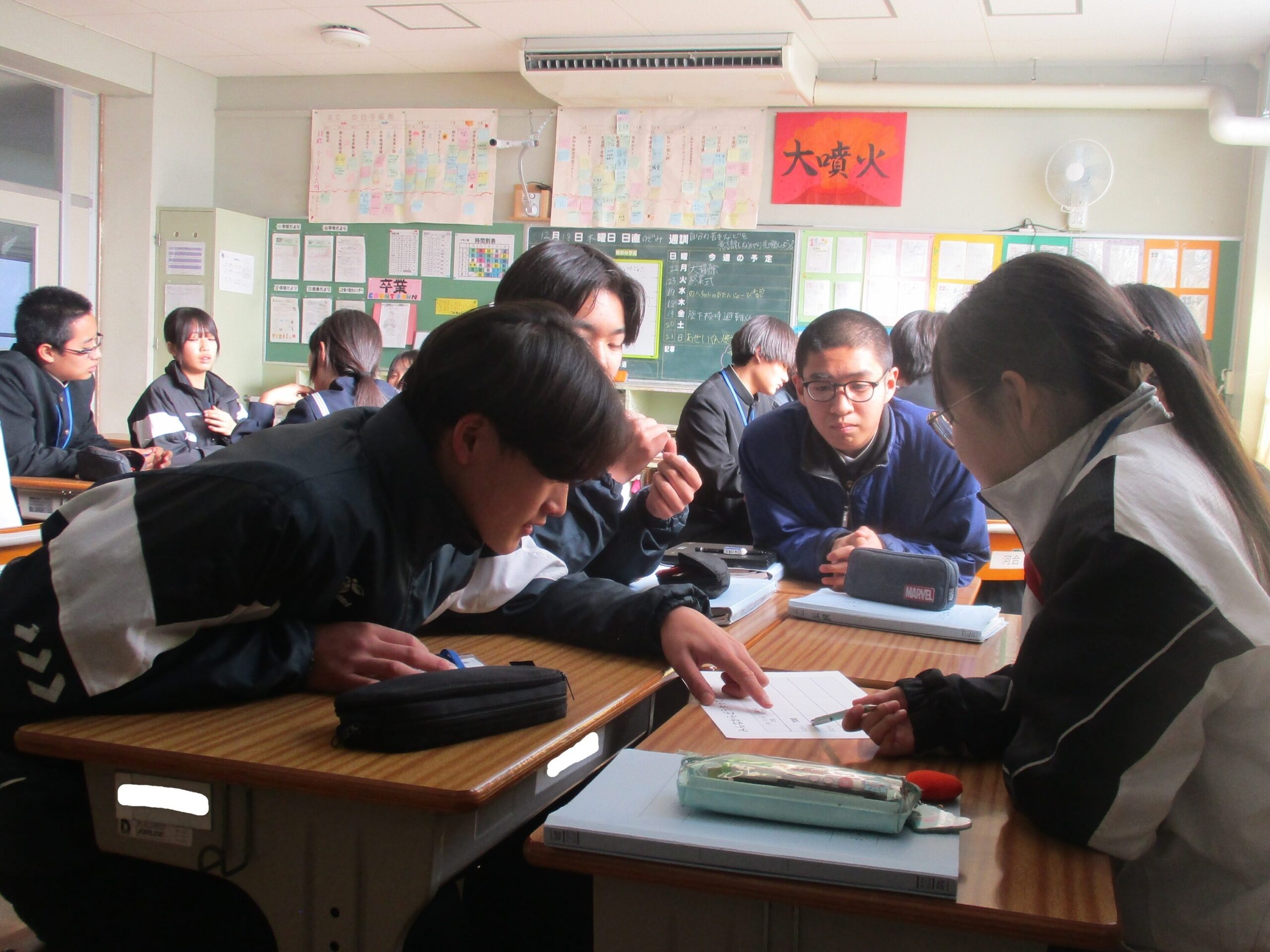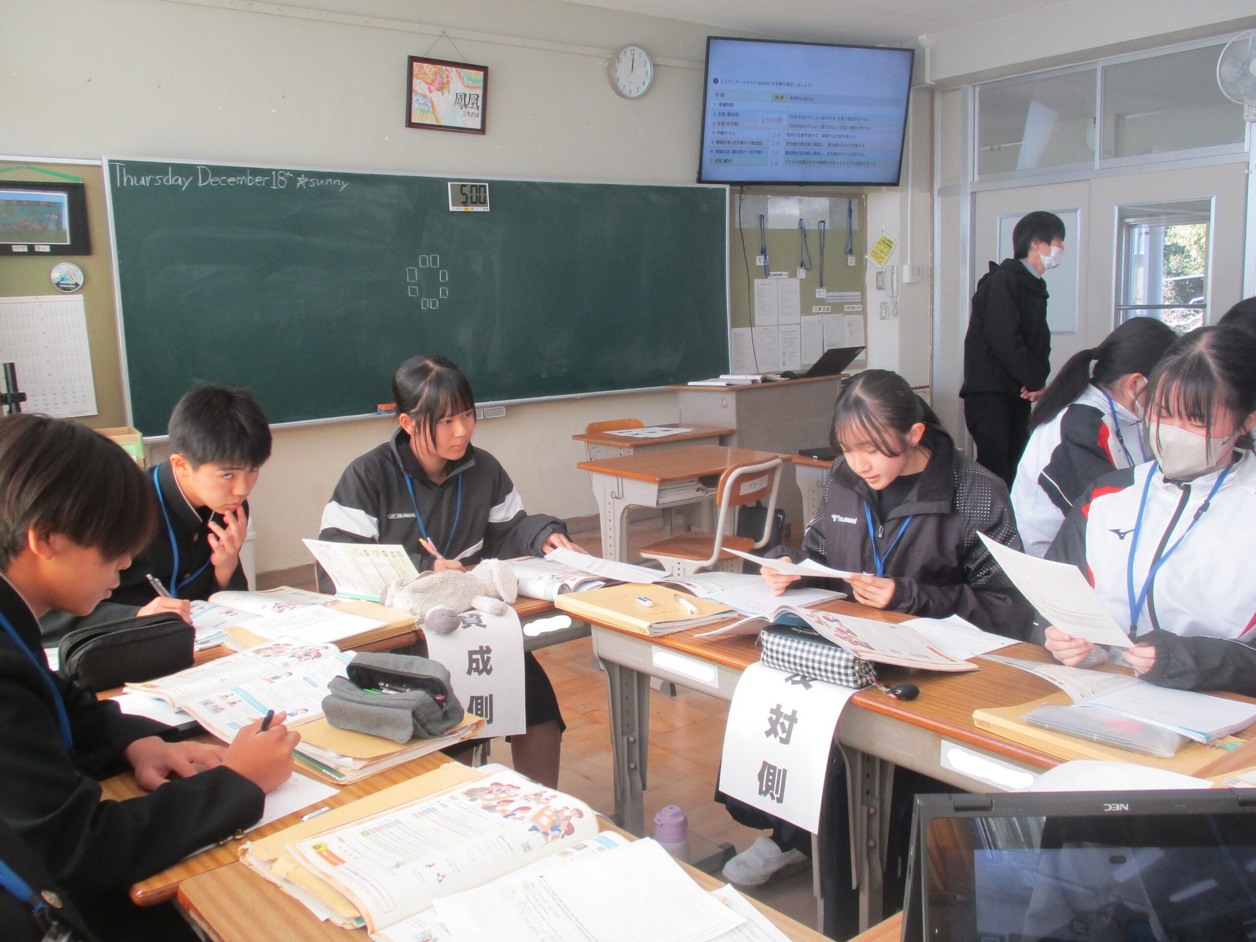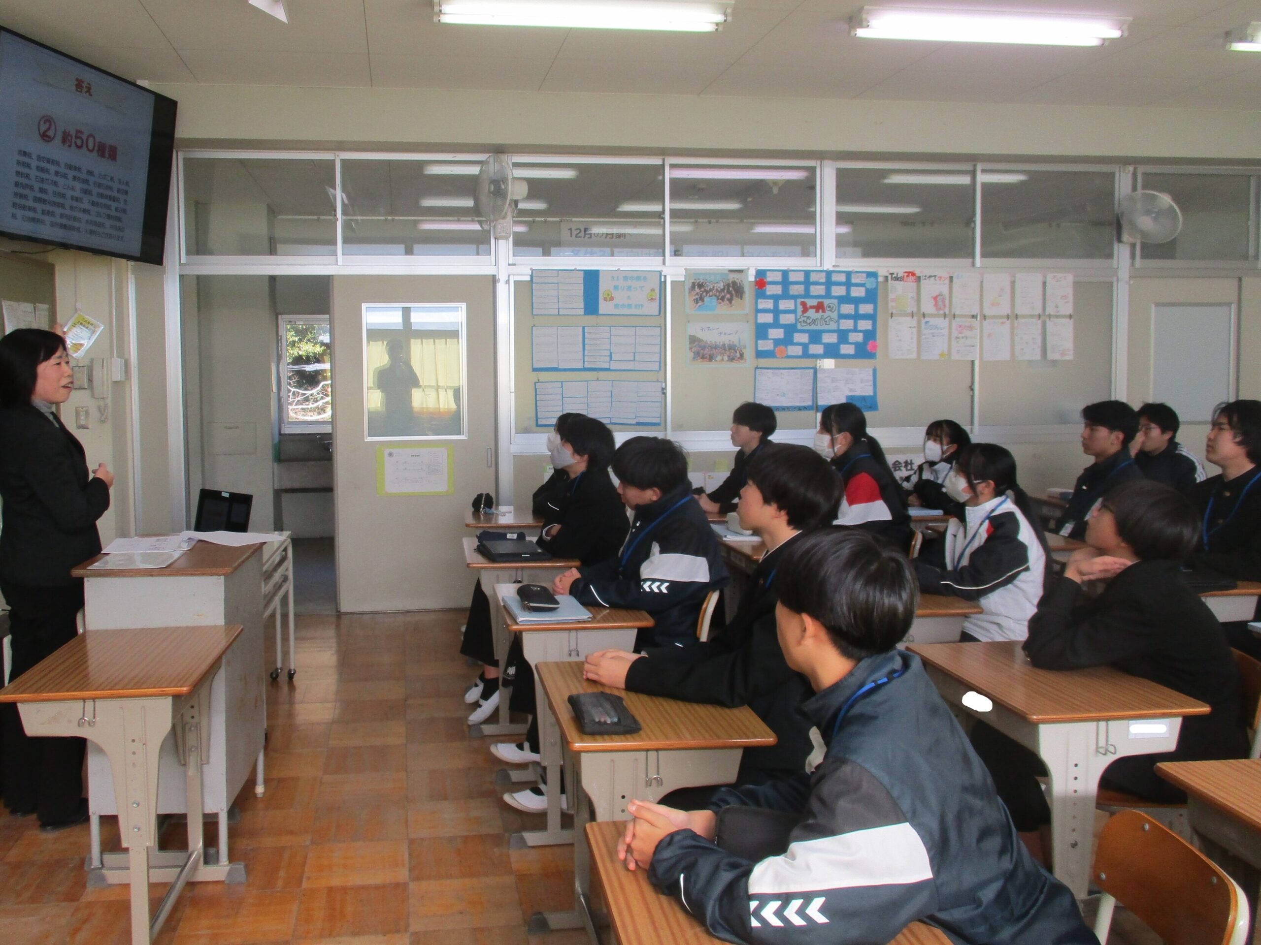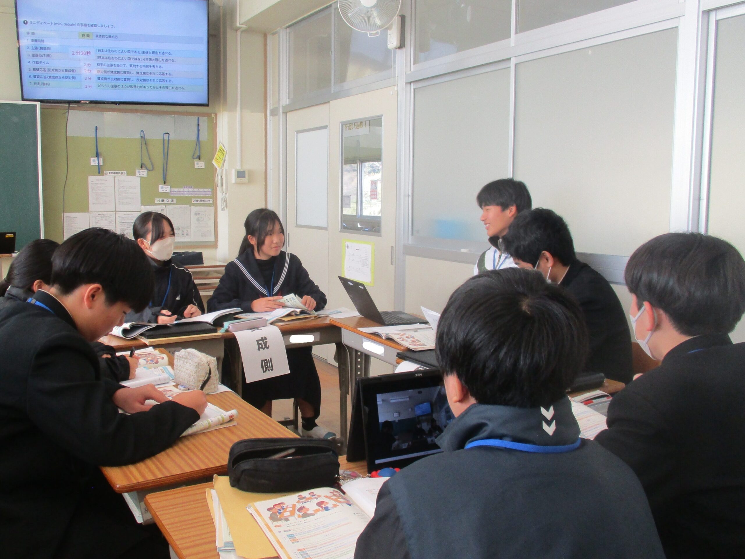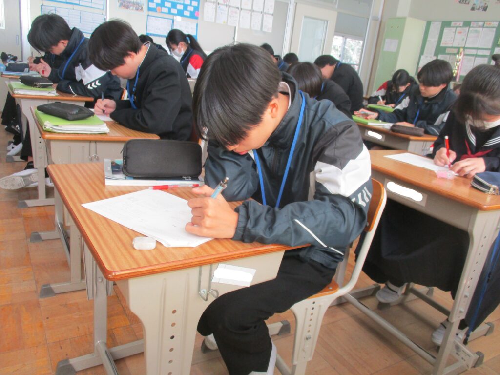 税理士に来ていただき、租税教室を開催しました。公正・公平な税の負担について考えました。グループワークを通して、いろいろな立場の人が無理なく支払える税負担の方法を考えました。他のクラスでは、理科で過去問を解いていたり、英語でディベートをしていたりしました。